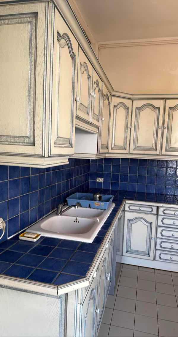 une cuisine meublée séparée (plaque gaz, four et hotte) de 12.61m²,